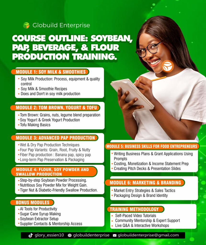 SOYBEAN, PAP, BEVERAGE & FLOUR PRODUCTION TRAINING.